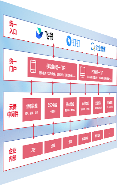 对协作平台提供支持服务,,支持企业应用与协作平台对接,,,包含组织同步、、消息集成、、、、待办集成等。。。。支持目前主流的协作平台:钉钉、、、、企微和飞书。。。